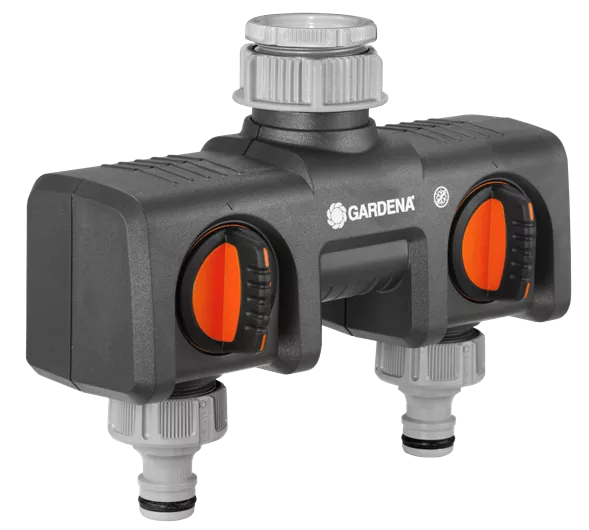 - Le sĂ©lecteur d’arrosage 2 voies GARDENA permet de crĂ©er 2 rĂ©seaux Ă partir dâun point dâeau.