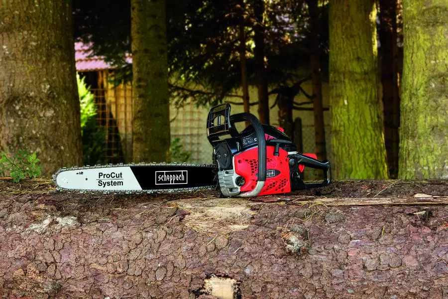 - Coupez du bois de grandes dimensions en adoptant la tronçonneuse thermique Scheppach CSP5300.